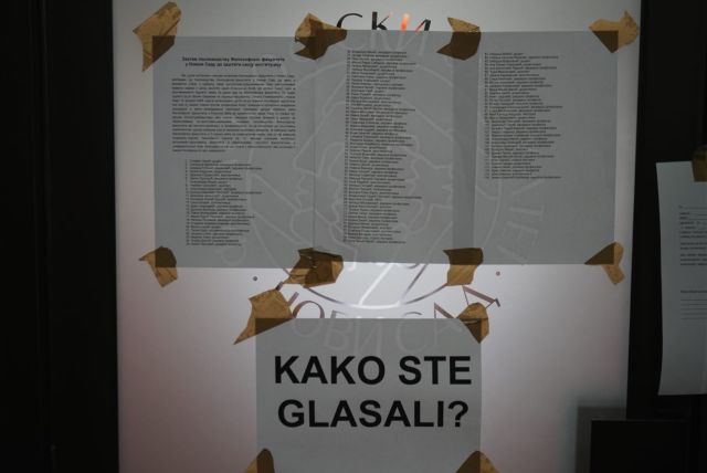 Dekan je sastanak započeo konstatujući da jeste otvoren za dijalog, ali da smatra da lepljenje transparenata i blokadu ulaza u dekanat nije u skladu sa akademskom kulturom i komunikacijom, i da se umesto toga može poslati „lep poziv na adresu dekanata“.