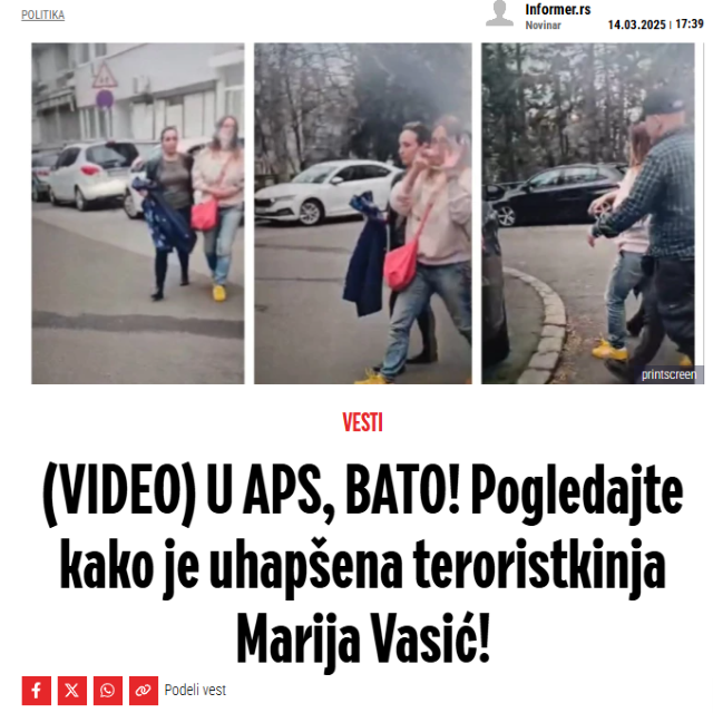 Još jednu sponu između organa vlasti i propagandnih medija je istakao Aleksandar Petrović, advokat okrivljene gimnazijske profesorke Marije Vasić. Naime, kada je policija zvala Vasić da bi dala iskaz u svojstvu građanina 13. marta, morala je iz svog stana u Beogradu da bude prevezena do policijske stanice u Novom Sadu. Policijski službenici su je vozili i po navodima Petrovića i Vasić, ona je u međuvremenu premeštena u drugo vozilo gde su joj stavljene lisice i snimljena je za vest tabloida Informer. Oba njena advokata su potvrdila da pre stupanja u vozilo nije nosila lisice.